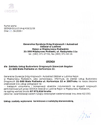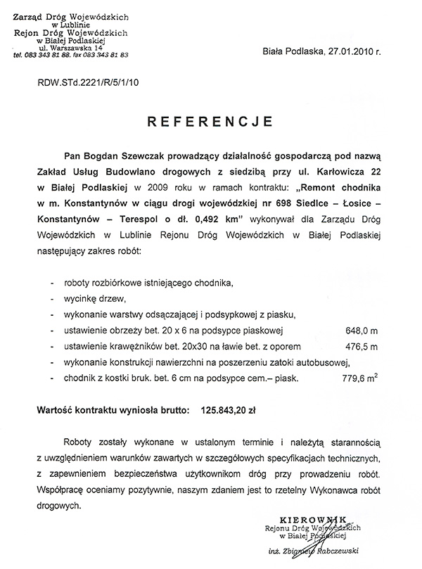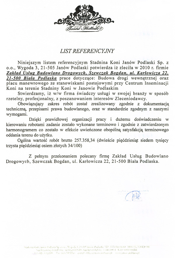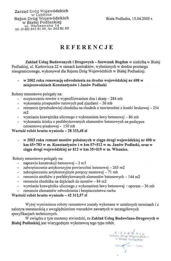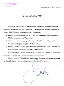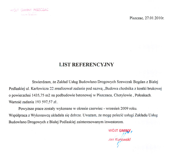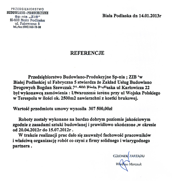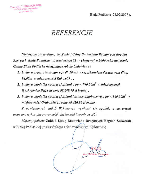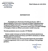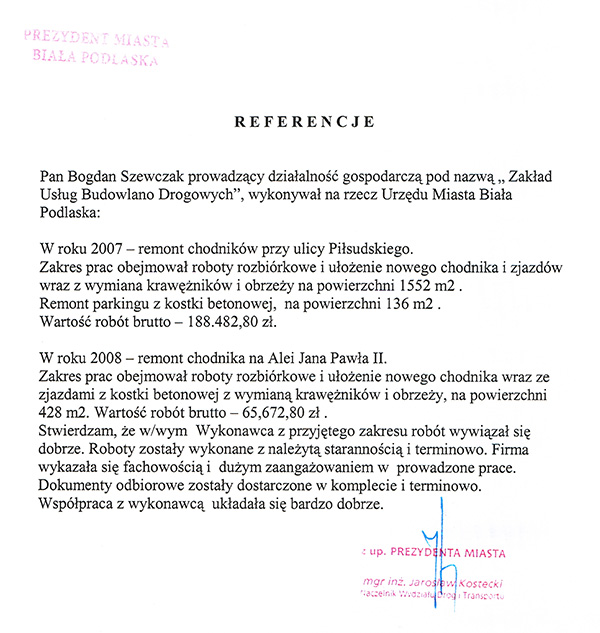 Zapraszamy do zapoznania się z referencjami wystawionymi przez naszych Klientów w oparciu o dotychczasowe zlecenia.