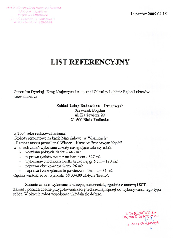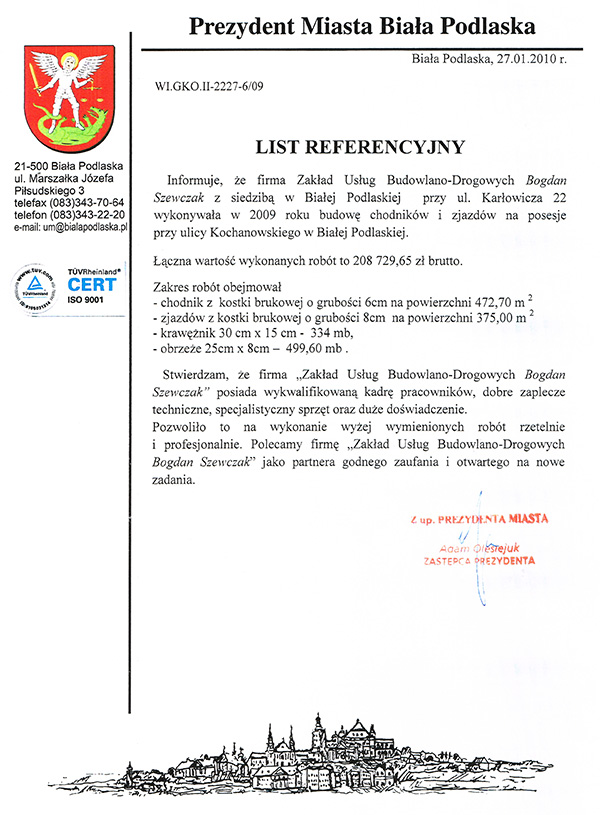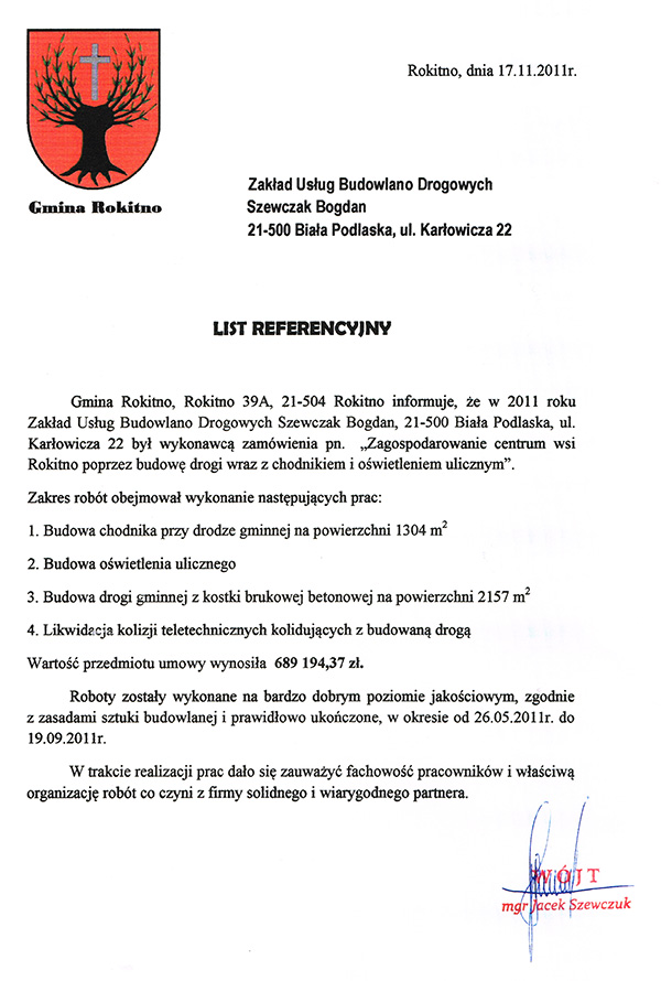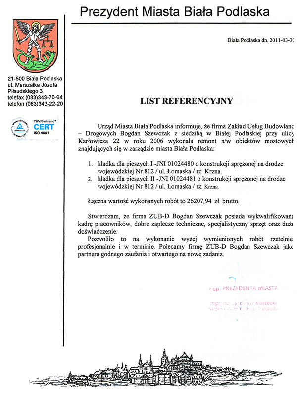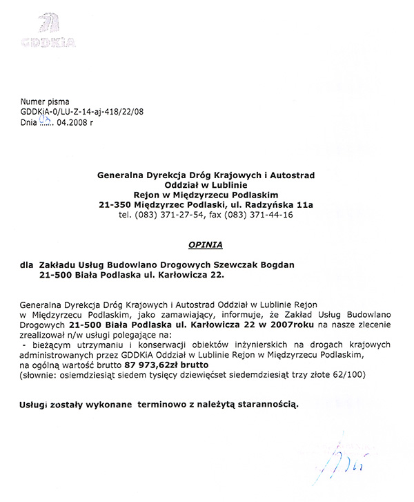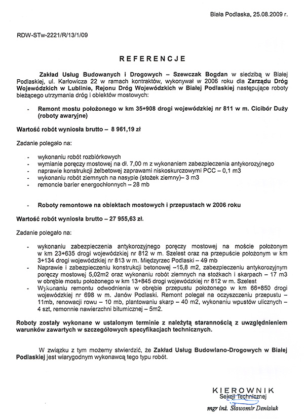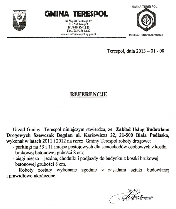 Zapraszamy do zapoznania się z referencjami wystawionymi przez naszych Klientów w oparciu o dotychczasowe zlecenia.